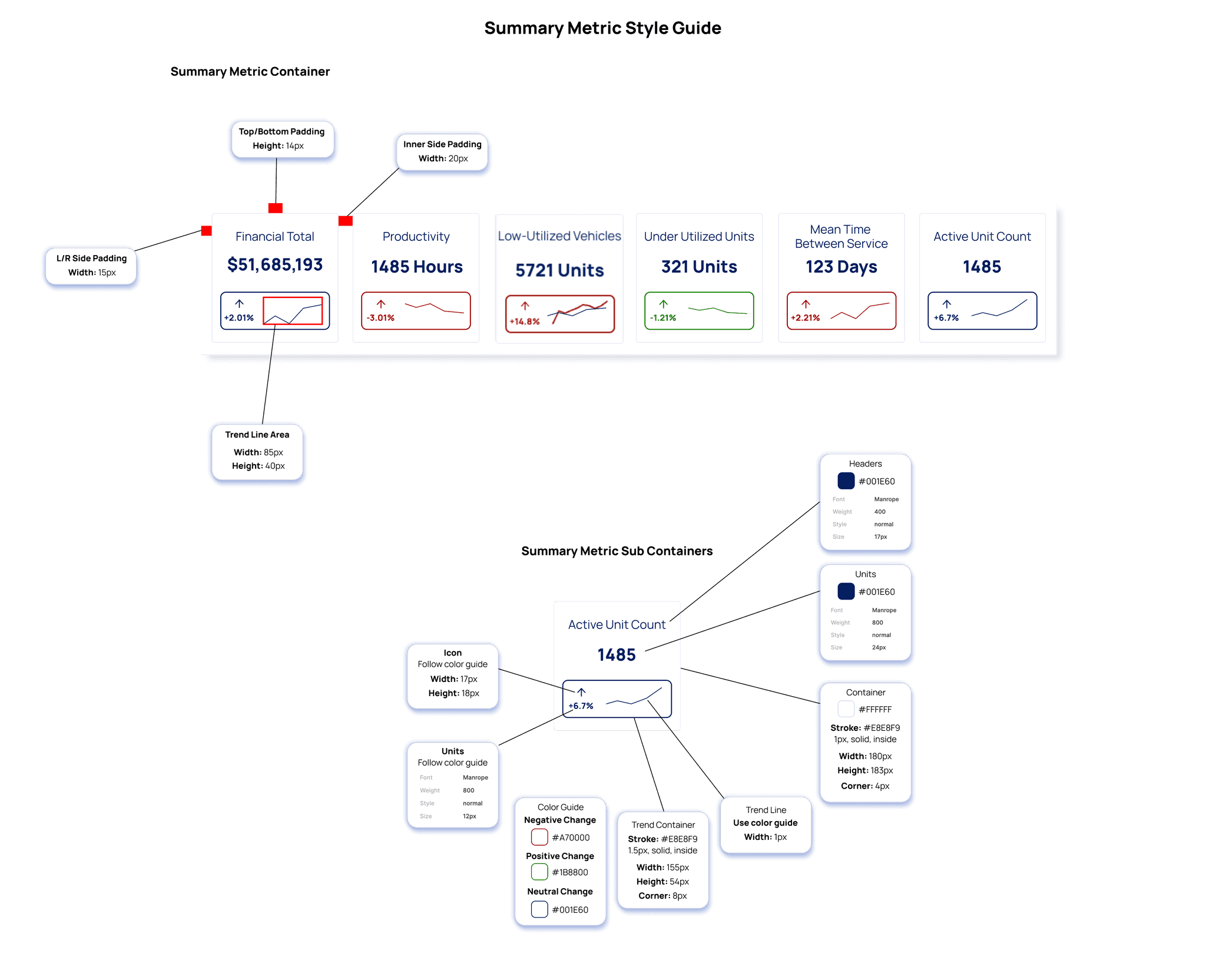 Sample Component Styling from Developer PDF - Trend Lines Summary Metrics
